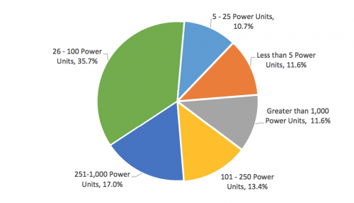 The average marginal cost-per-mile for carrier operations rose in 2014 more than three cents to $1.703, according to ATRI’s study, up from 2013’s $1.676. ATRI surveyed carriers that in total account for 54,833 tractors and/or trucks. See the percentage breakdown above for respondent fleets’ size.